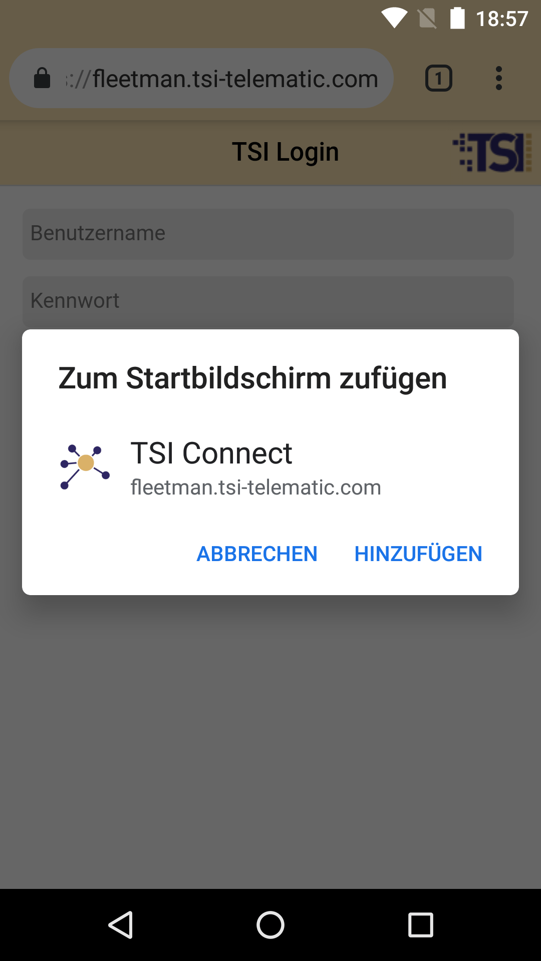 Sie können TSI Connect auch direkt auf Ihren Startbildschirm legen, damit Sie zukünftig die App noch schneller und bequemer erreichen. Viele Smartphones bieten Ihnen dies bei der ersten Nutzung direkt an, oder führen Sie dies mit ein paar Schritten selbst durch: